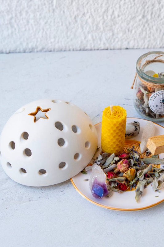 El Yapımı Seramik Tütsülük 3'ü 1 aradaBu harika seramik tütsülük evinizin en şık parçası olacak. El yapımı tütsülük çok amaçlı olarak tasarlanmıştır. Bu ürün tütsü demeti, palo santo, mum kullanımına uygundur. Bu detaylar fotoğraflarda bilgi vermek amacıyla kullanılmıştır, siparişinizde tamamlayıcı ürünler gelmeyecektir, sadece seramik...- ₺540.99