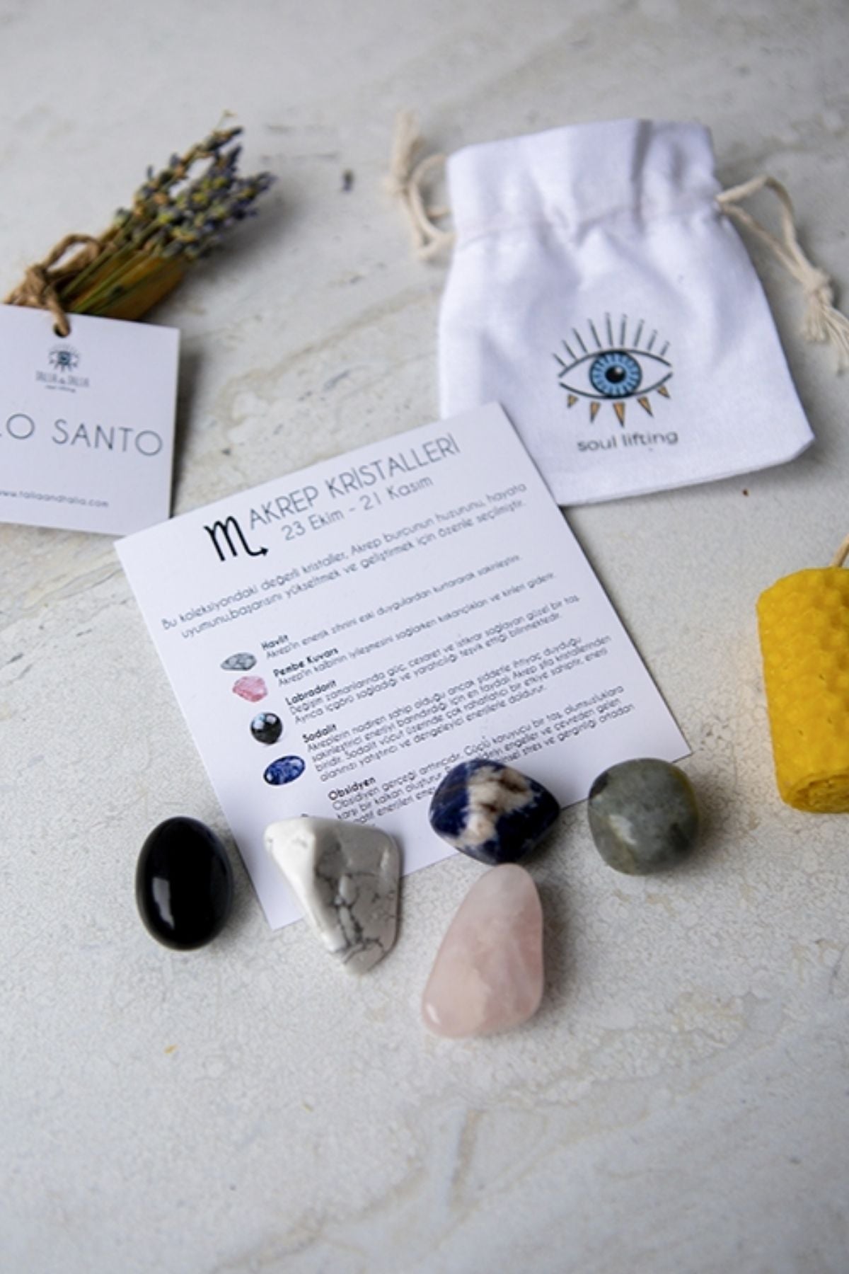 Bu koleksiyondaki değerli kristaller, Akrep burcunun huzurunu, hayata uyumunu,başarısını yükseltmek ve geliştirmek için özenle seçilmiştir.