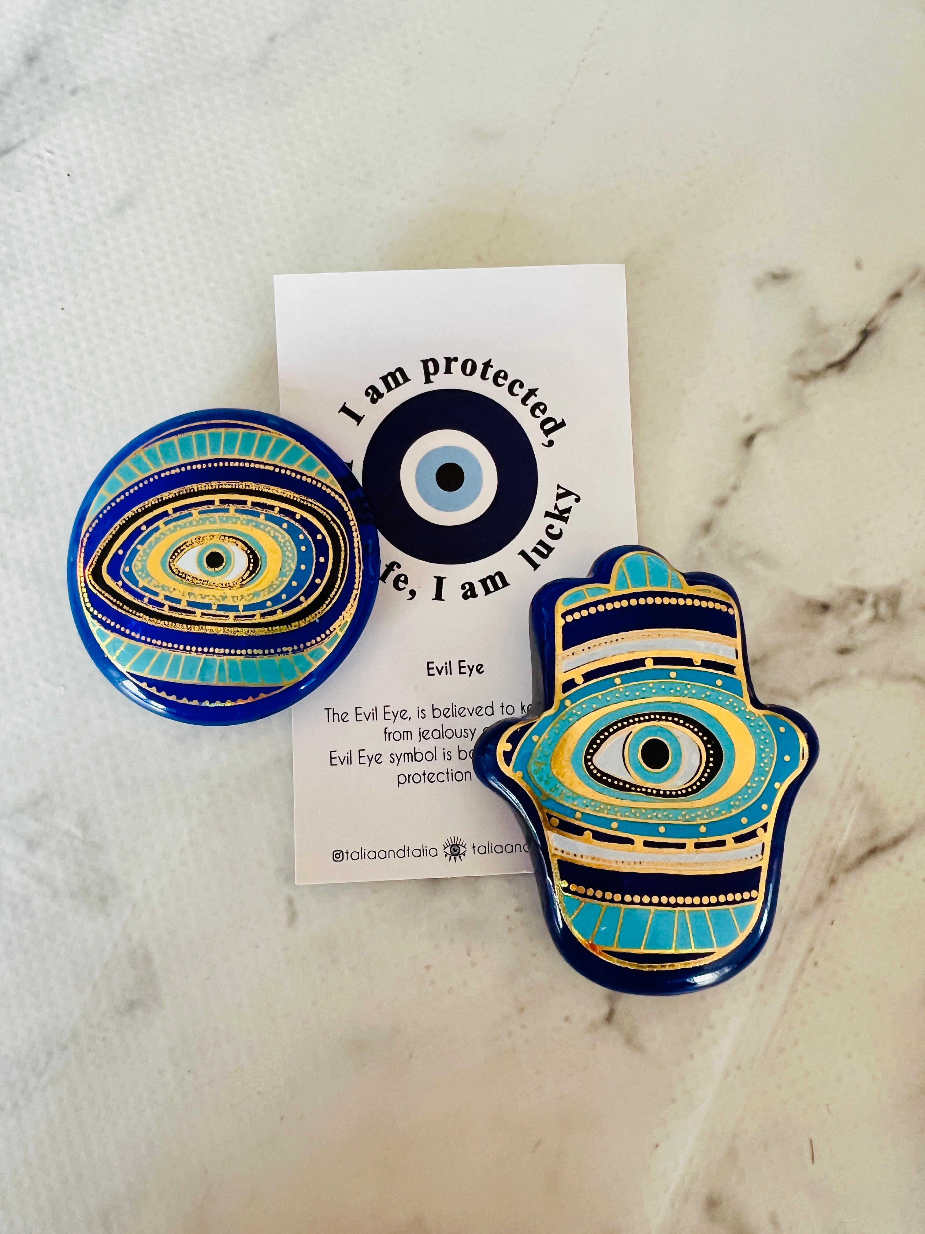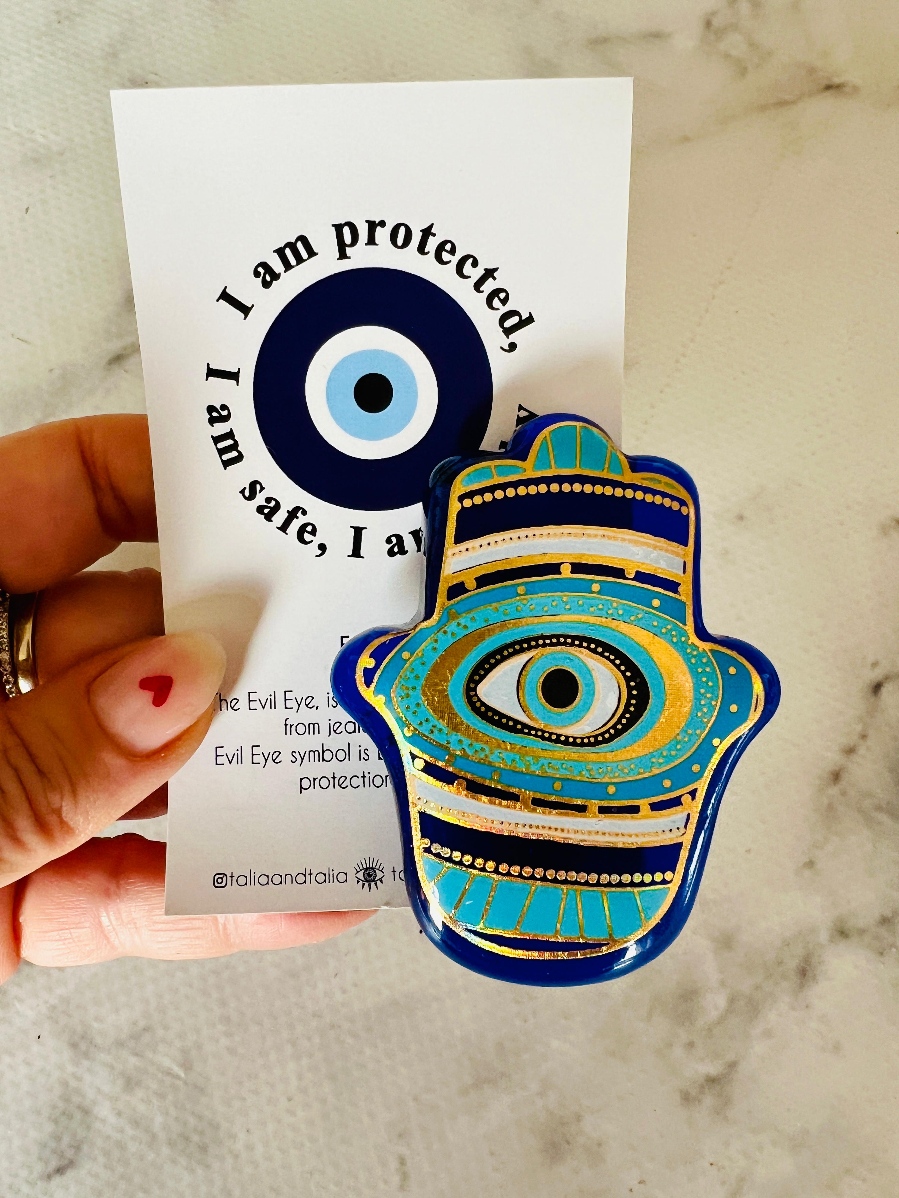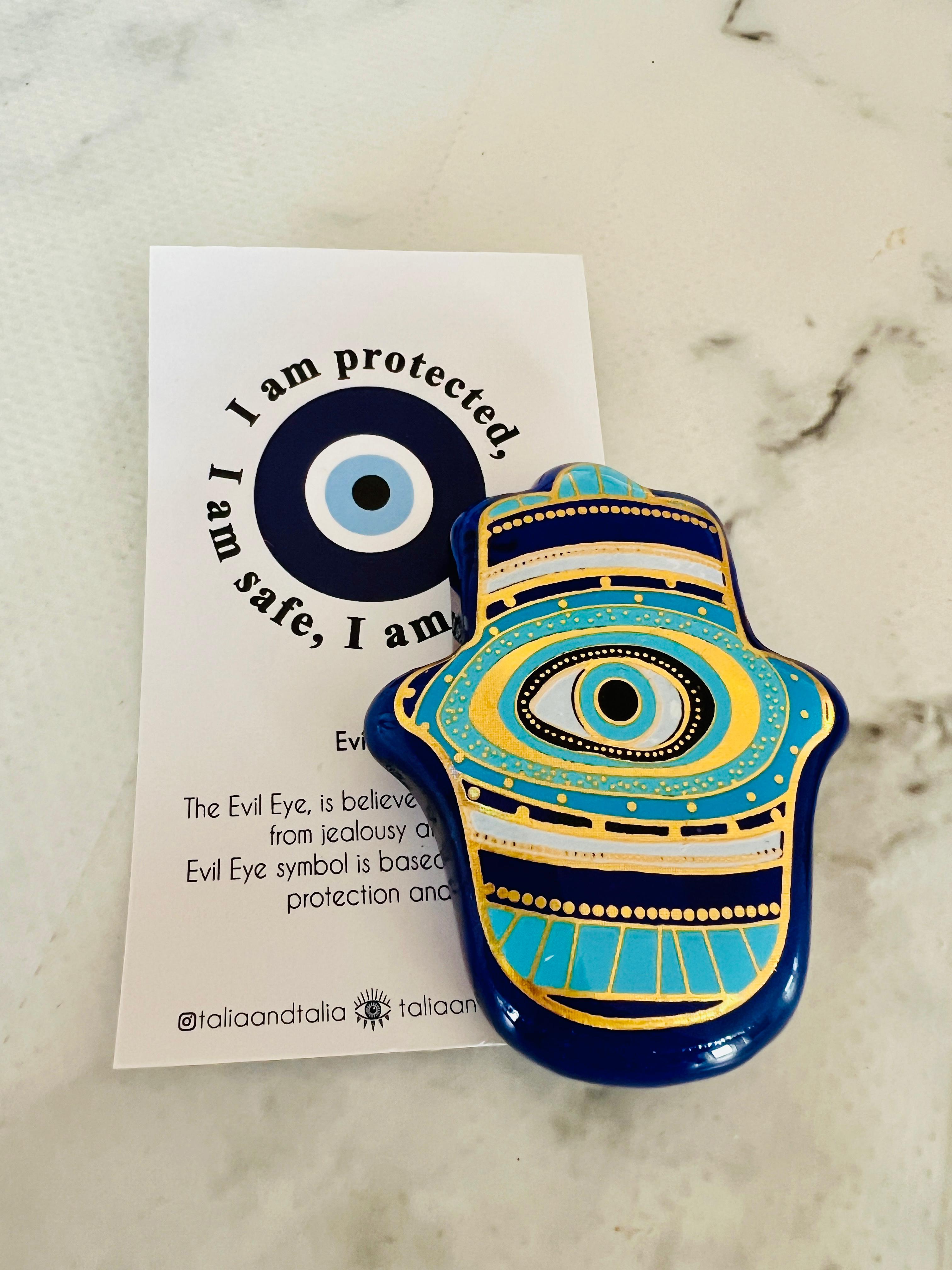 Pikka Cam Magnet, koruyucu sembollerin zamansız estetiğini modern bir yorumla bir araya getiren özel bir dekoratif objedir. El yapımı olarak üretilen bu cam nazar magnet, güçlü Evil Eye (nazar gözü) motifiyle yaşam alanlarınıza hem anlam hem de stil katar.