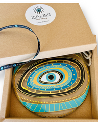 • %100 el emeğiyle üretilen nazar boncuklarımız, tamamen el boyaması ve baskılı olarak hazırlanır.