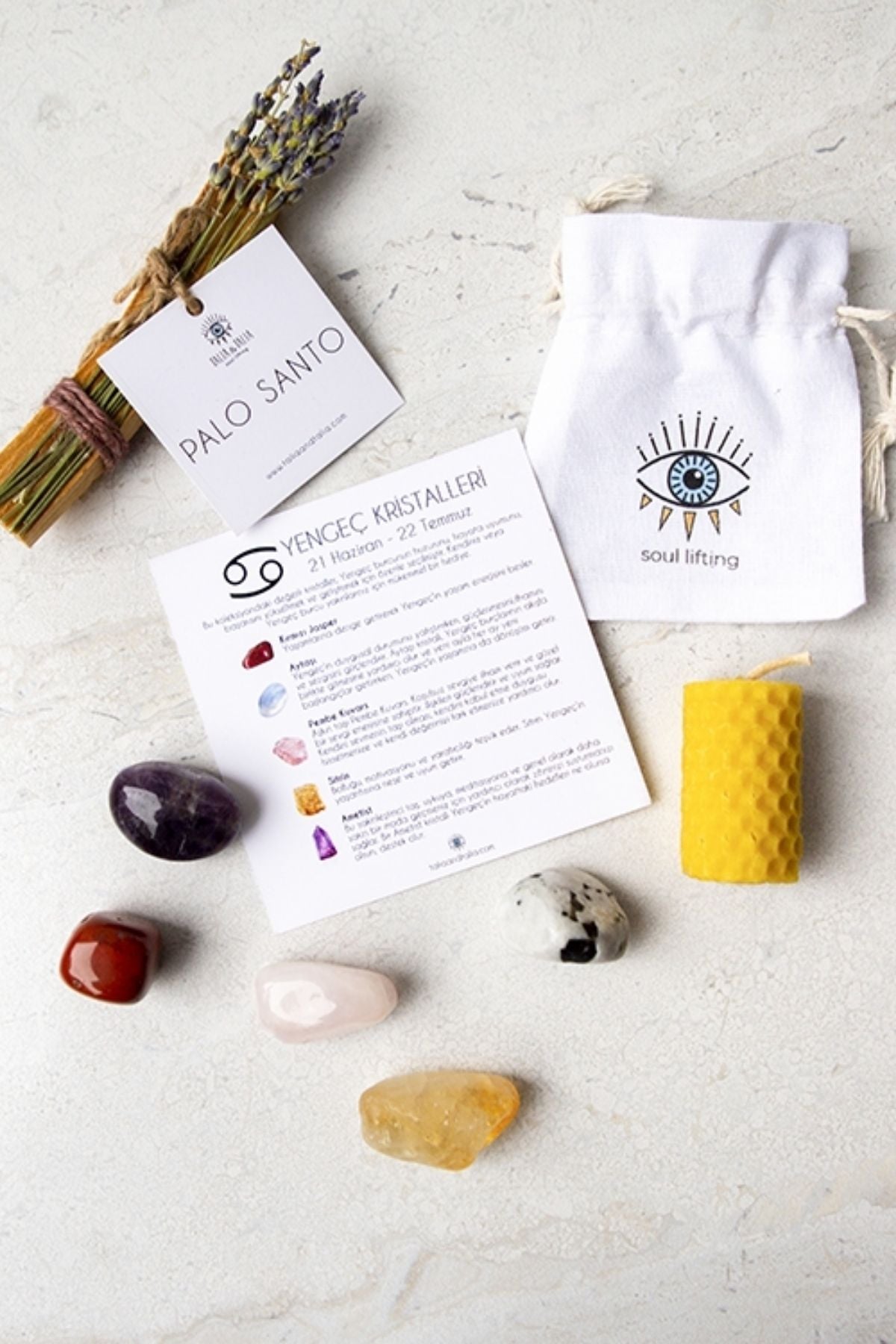 Bu koleksiyondaki değerli kristaller, Yengeç burcunun huzurunu, hayata uyumunu,başarısını yükseltmek ve geliştirmek için özenle seçilmiştir. Kendiniz veya Yengeç burcu yakınlarınız için mükemmel bir hediye.